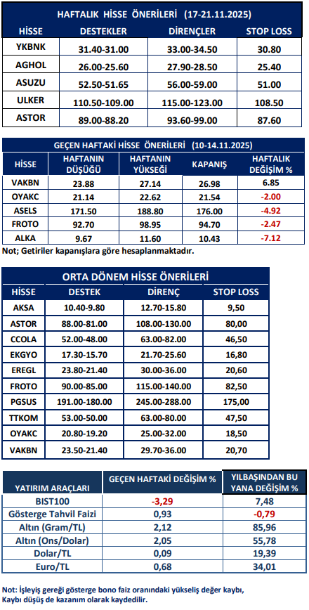 Siyasi gelişmelerin etkisine giren Borsa İstanbul yönünü aşağıya çevirdi. Geçen hafta İBB soruşturmasının ardından CHP ile ilgili dezenformasyon ve spekülasyonlar siyaseti gündemin ilk sıralarına çekti. Piyasalar siyasetten fırsat buldukça TCMB faiz indirim sürecine yönelik fiyatlamalar ile kendine gelmeye çalışıyordu. Enflasyon düşüşü ve buna bağlı olarak faiz indirimlerine yönelik algı, TCMB enflasyon raporu sunumunda yıl sonu enflasyon tahmininin 5 puan yukarı çekilmesiyle zayıflamış durumda. Olumlu fiyatlamaya konu olan en önemli çıpa ve beklenti biraz güç kaybetti. Bunun üzerine bir de siyasetin yükü gelince piyasalar bu durumu taşımakta zorlandı. TCMB faiz indiriminin devamı için özellikle Kasım enflasyonu özel önem taşıyor. Ekim gibi Kasım ayında da beklenti altı bir enflasyon verisi faiz indirimi konusunda TCMB’nin elini rahatlatabilir. Borsa İstanbul ne olacak da yükselecek sorusunun henüz net ve tatmin edici bir açıklaması verilebilmiş değil. Ucuz ve primsiz olduğu konusunda doğruluk payı yüksek ve kabul gören bir görüş var. Ancak talep zayıf olunca henüz bu durum çok işlerlik kazanmış görülmüyor. Borsa İstanbul’da temkinli görünüm korunuyor. TCMB verilerine göre 7 Kasım ile biten haftada; Yabancı yatırımcılardan hisse senetlerinde 35.7 milyon dolar, tahvil bonoda 311.5 milyon dolar olmak üzere toplamda 347 milyon dolarlık portföy yatırımları girişi oldu. Alımlar bir önceki haftanın altında gerçekleşti. TCMB brüt rezervleri 1.45 milyar dolarlık artışla 185 milyar dolara ulaşırken, yurtiçi yerleşiklerin yabancı para mevduatı 1.3 milyar dolarlık düşüşle 209 milyar dolara geriledi. TCMB brüt rezervlerindeki artışta altın fiyatlarındaki düşüşün yerini çıkışa bırakmasının etkilerini dikkate almak lazım. Swap hariç net rezervler ise 58.4 milyar dolar olarak kaydedildi. Rezervlerdeki artış, döviz kurları üzerinde faizle birlikte önemli bir kontrol aracı oluşturuyor. Ancak yüksek rezerv taşımanın da bir maliyeti var. Bunu bütçede faiz giderlerine bakıldığında gözlemlemek mümkün. Tercih veya zorunluluk, ancak rezervlerin güçlü olması önemli ve olumlu. Son birkaç haftadır gerilemesine rağmen döviz mevduatları 209 milyar dolara ulaşmış durumda. Ocak ayının ilk haftasında bu rakamın 163 milyar dolar olduğunu dikkate alırsak döviz mevduatındaki büyümenin ciddiyet kazandığı görülecektir. Bu rakama döviz fonlarındaki rakamlar dahil değil. Faizlerdeki düşüş ve güvenli liman anlayışının dövize yönelimi artırdığı söylenebilir. Geçen hafta TCMB tarafından yayınlanan ödemeler dengesi tablosunda; Doğrudan yatırım, portföy yatırımları (sıcak para) ve net hata noksan kalemlerindeki çıkışların da geçen yıla göre arttığı görülüyor. Faizlerdeki gerileme, sermaye çıkışları ile dövize yönelimdeki artış kurlardaki yükselişin önemli kaynakları olarak görülüyor. Buna rağmen TL’nin değerli kaldığı söylemleriyle sepet olarak kur artışları halen enflasyonun altında kalmaya devam ediyor.
