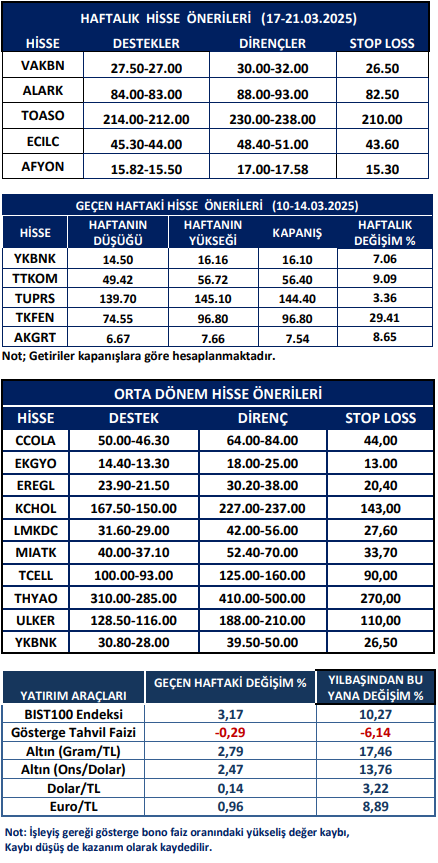 Meksa Yatırım Haftalık Hisse Önerileri – (17-21 Mart 2025)