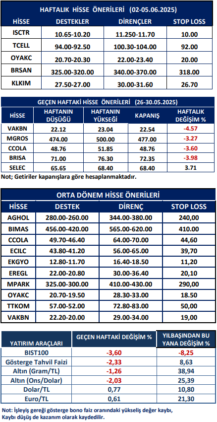 Haftalık Hisse Önerileri