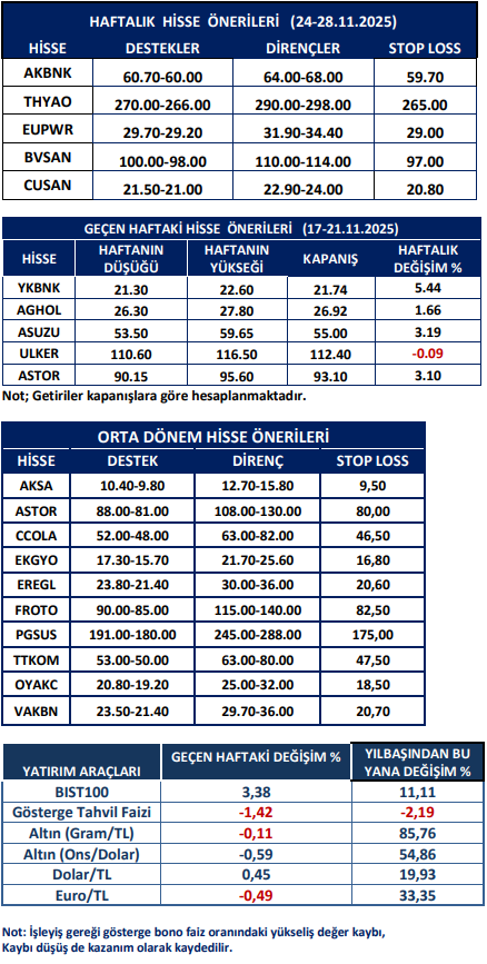 Piyasalarda dalgalı seyir sürüyor. Borsa, altın, gümüş, gösterge tahvil faizinde geçen hafta daha hareketli bir süreç görüldü. Borsada tepki çıkışı vardı. Ancak son bir ayda üçüncü defa test edilen 11.000 seviyesinin üzerinde kalmakta zorlanıldı ve satışlar görüldü. Borsada çıkışa dayanak olacak farklı bir gündem ve bir haber akışı yoktu. Buna karşılık piyasa bozucu bir gelişme de görülmedi. Borsa İstanbul’da bir süredir dillendirilen “ucuz ve primsiz” olduğu algısı 09/2025 dönem bilançolarının tamamlanmasıyla tekrar öne çıkmaya başladı. Ayrıca kasım enflasyonunun ekim ayının altında gelebileceği, bunun da TCMB’nin faiz indirim sürecinin devamını sağlayacağı şeklindeki görüşlere çok güçlü olmasa da yer veriliyor. Bu durum henüz ciddi bir beklentiye dönüşmüş değil. Fakat tepki çıkışı için gerekçelerden biri olarak görülüyor. Hatırlanırsa TCMB son enflasyon raporu sunumunda yıl sonu tahminini 5 puan yukarı çekmişti. Bu durum dezenflasyon sürecinin yavaşladığı savıyla TCMB’nin faiz indirimlerine devam edeceği beklentilerini zayıflatmıştı. Kasım verisinin TCMB’nin aralık toplantısındaki faiz kararı için özel önem arz ettiği aşikâr. Fakat bu aşamada kasım enflasyonuna ilişkin beklenti fiyatlaması için erken. Enflasyon ne olacak da daha düşük gelecek sorusunun cevabı net değil. Piyasaların ve ekonominin seyri açısından olay yine büyük ölçüde enflasyon ve TCMB faiz kararı etrafında düğümleniyor. Yatırım kararları için de öyle. Yerli yatırımcı yüksek faiz nedeniyle tasarruflarını daha çok sabit getirili yatırım araçlarında yani faizde park etmiş durumda. Altın, konut zaten geleneksel yatırım araçları arasında. Tasarrufları o taraftan bir parça hisse senetlerine çekecek, cezbedecek güçlü bir beklenti borsada henüz oluşmuş değil. Yabancı yatırımcılar da bu noktada Borsa İstanbul’a oldukça mesafeli. Son günlerde dışarıda gelişen ülke piyasalarına daha olumlu bir bakış var. Bu durum Türkiye’ye ne ölçüde yansıyacak onu izleyeceğiz. Geçtiğimiz günlerde JP Morgan’ın Türkiye yatırımlarını genişleteceği konusundaki haberler bu açıdan önemli. Borsa düşünce ucuz ve primsiz olduğu gerekçesiyle tepki alımları geliyor. Çıkış denemeleri ise direnç noktalarına takılıp kalıyor. Uzun süredir bu görüntü tekrarlanıyor. Özellikle siyasi gelişmeler borsadaki çıkışa sekte vuran bir işlev gördü. Siyasetten başını kaldırıp ileri bakacak uzun soluklu bir imkan bulamadı. Temmuz/2024 ayından bu yana 8.600-11.600 aralığında dalgalanan bir borsa görünümü var. Dolar bazında ise kabaca 240-340 bandında hareket söz konusu. Primsiz olduğu düşüncesi bu görünümden çıkıyor. Oldukça doğru bir tespit. Fiyat kazanç gibi bilanço rasyolarına göre bakıldığında BIST100 halen 13 seviyelerinde. Daha önce 19 seviyeleri test edilmişti. Son çıkış hareketi 7-8’li seviyelerden başladı. Bu açıdan bakınca BIST100 makul bir noktada görülüyor. Yani borsa pahalı değil, yatırım için şartlar uygun. Gündem rahatladığında yukarı sert tepki vermesi bu yüzden. Ancak yukarıya taşıyacak beklenti ve talep eksikliği henüz giderilmiş görülmüyor. Parasal istatistikler ve yabancı işlemleri piyasanın önemli verileri olarak yakından izleniyor. TCMB tarafından açıklanan 14 Kasım ile biten haftanın verilerine göre; Yabancı yatırımcılar hisse senetlerinde 158 milyon dolarlık satış yaparken tahvil bonoda 499 milyon dolarlık alım yaptılar. Böylelikle hisse senetlerinde son iki haftalık alım serisi kesintiye uğramış oldu. Tahvil bonoda ise alımlar üç haftadır devam ediyor. Rezervlerdeki artışta yine altın fiyatlarındaki yükselişin etkisini hesaba katmak gerekecek. Türkiye’nin ülke risk primindeki (CDS) düşüş ise devam ediyor. Geçen hafta 240’ın altını test etti. Ancak yabancı yatırımcı nezdinde bu aşamada pek bir etkisi olmuş görülmüyor.