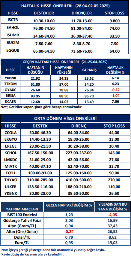Haftalık Hisse Önerileri