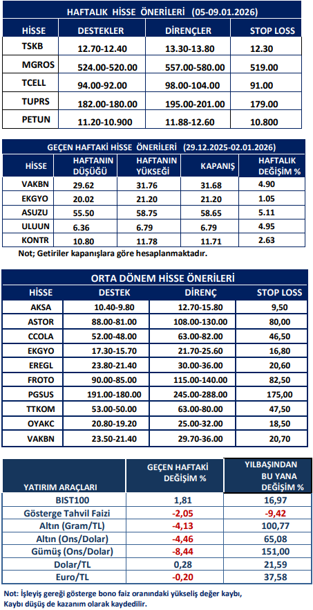 Haftalık Hisse Önerileri
