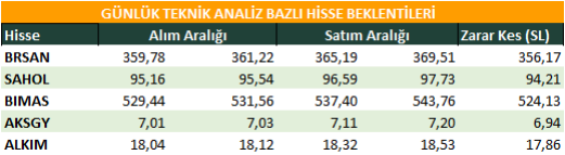 Günlük Teknik Analiz Bazlı Hisse Beklentileri