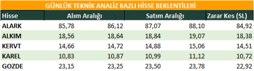 Günlük Teknik Analiz Bazlı Hisse Beklentileri