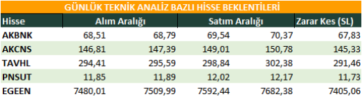 Günlük Teknik Analiz Bazlı Hisse Beklentileri