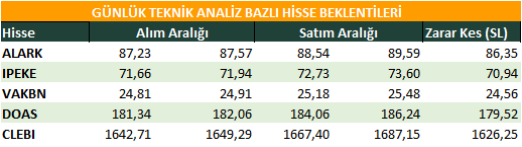 Günlük Teknik Analiz Bazlı Hisse Beklentileri