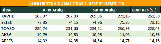 Günlük Teknik Analiz Bazlı Hisse Beklentileri