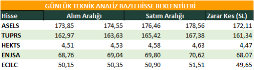 Günlük Teknik Analiz Bazlı Hisse Beklentileri