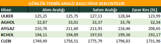 Günlük Teknik Analiz Bazlı Hisse Beklentileri