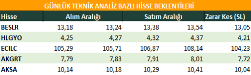 Günlük Teknik Analiz Bazlı Hisse Beklentileri