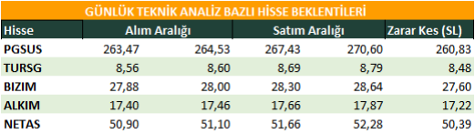 Günlük Teknik Analiz Bazlı Hisse Beklentileri