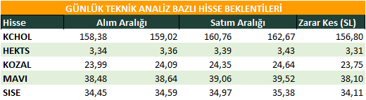 Günlük Teknik Analiz Bazlı Hisse Beklentileri