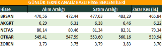 Günlük Teknik Analiz Bazlı Hisse Beklentileri
