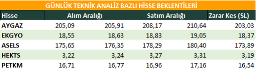 Günlük Teknik Analiz Bazlı Hisse Beklentileri