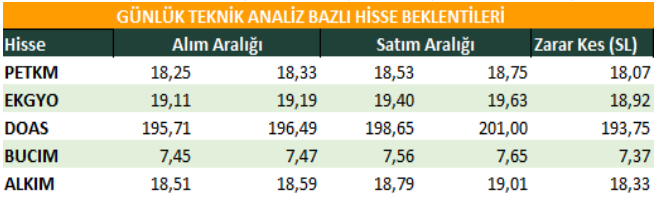Günlük Teknik Analiz Bazlı Hisse Beklentileri
