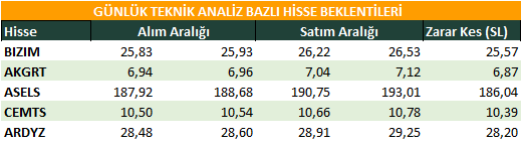 Günlük Teknik Analiz Bazlı Hisse Beklentileri