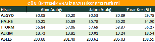 Günlük Teknik Analiz Bazlı Hisse Beklentileri