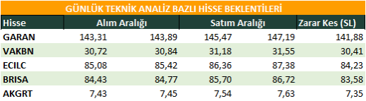 Günlük Teknik Analiz Bazlı Hisse Beklentileri