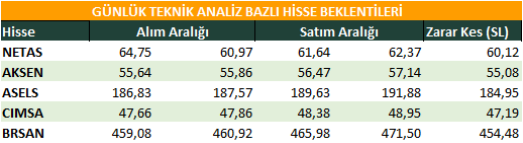 Günlük Teknik Analiz Bazlı Hisse Beklentileri