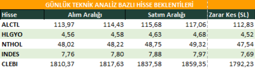 Günlük Teknik Analiz Bazlı Hisse Beklentileri