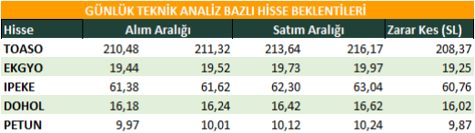 Günlük Teknik Analiz Bazlı Hisse Beklentileri