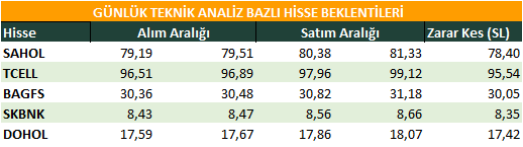 Günlük Teknik Analiz Bazlı Hisse Beklentileri