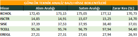 Günlük Teknik Analiz Bazlı Hisse Beklentileri