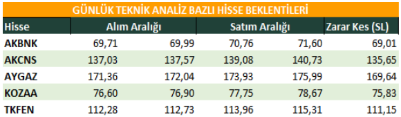 Günlük Teknik Analiz Bazlı Hisse Beklentileri