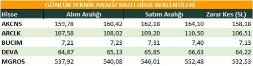 Günlük Teknik Analiz Bazlı Hisse Beklentileri
