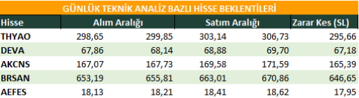 Günlük Teknik Analiz Bazlı Hisse Beklentileri