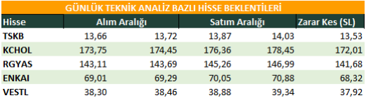 Günlük Teknik Analiz Bazlı Hisse Beklentileri