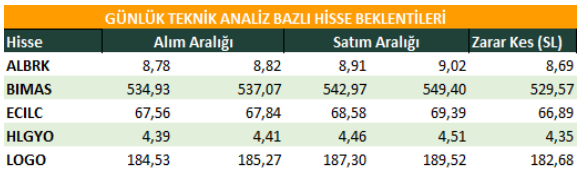 Günlük Teknik Analiz Bazlı Hisse Beklentileri