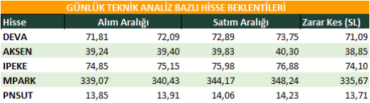 Günlük Teknik Analiz Bazlı Hisse Beklentileri