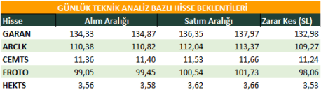Günlük Teknik Analiz Bazlı Hisse Beklentileri