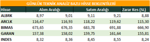 Günlük Teknik Analiz Bazlı Hisse Beklentileri