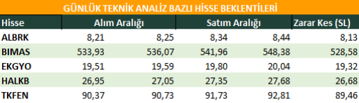Günlük Teknik Analiz Bazlı Hisse Beklentileri