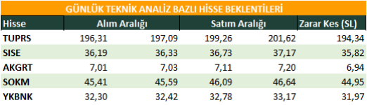 Günlük Teknik Analiz Bazlı Hisse Beklentileri