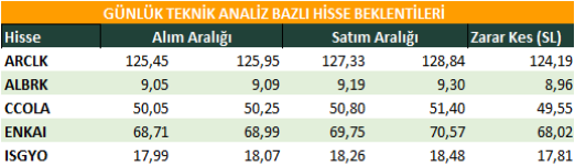 Günlük Teknik Analiz Bazlı Hisse Beklentileri