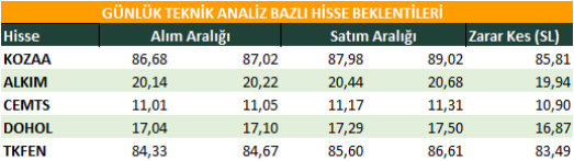 Günlük Teknik Analiz Bazlı Hisse Beklentileri