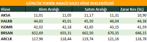 Günlük Teknik Analiz Bazlı Hisse Beklentileri