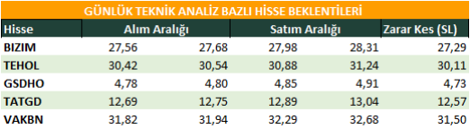 Günlük Teknik Analiz Bazlı Hisse Beklentileri