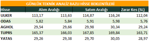 Günlük Teknik Analiz Bazlı Hisse Beklentileri