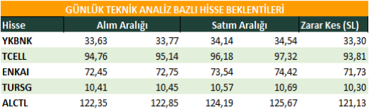 Günlük Teknik Analiz Bazlı Hisse Beklentileri
