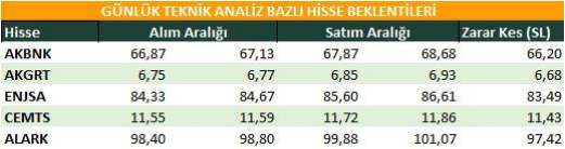 Günlük Teknik Analiz Bazlı Hisse Beklentileri