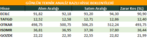 Günlük Teknik Analiz Bazlı Hisse Beklentileri