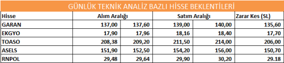 Günlük Teknik Analiz Bazlı Hisse Beklentileri