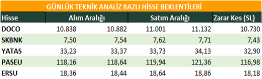 Günlük Teknik Analiz Bazlı Hisse Beklentileri