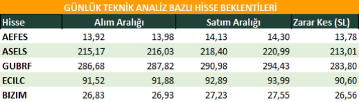 Günlük Teknik Analiz Bazlı Hisse Beklentileri