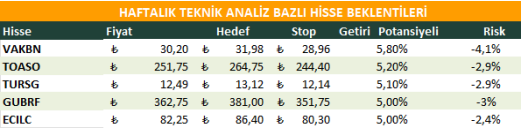 Haftalık Teknik Analiz Bazlı Hisse Beklentileri