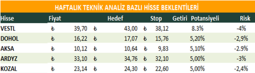 Haftalık Teknik Analiz Bazlı Hisse Beklentileri